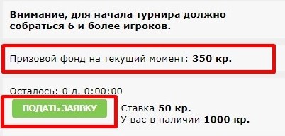 При подаче заявки, вы оплатите взнос в размере 50 кредитов, которые зачисляются в призовой фонд для победителя, победитель турнира может быть только один.