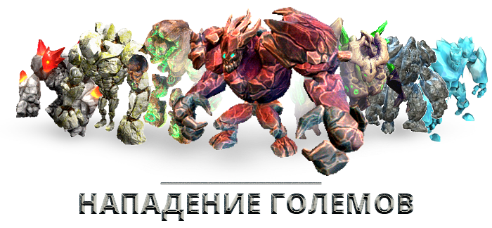 Големы нападаю группой, каждый раз во главе группы состоит Главный Голем, во время каждого нападения, големы проникают на улицы города, их надо найти и уничтожить, в это время Главный Голем всегда ждет на Окраине Города. До тех пор пока не убиты все простые Големы, на Главного Голема напасть нельзя. За победу над каждым Големом, выпадают ценные предметы, но только в том случае если вы смогли нанести минимум 500 Урона.